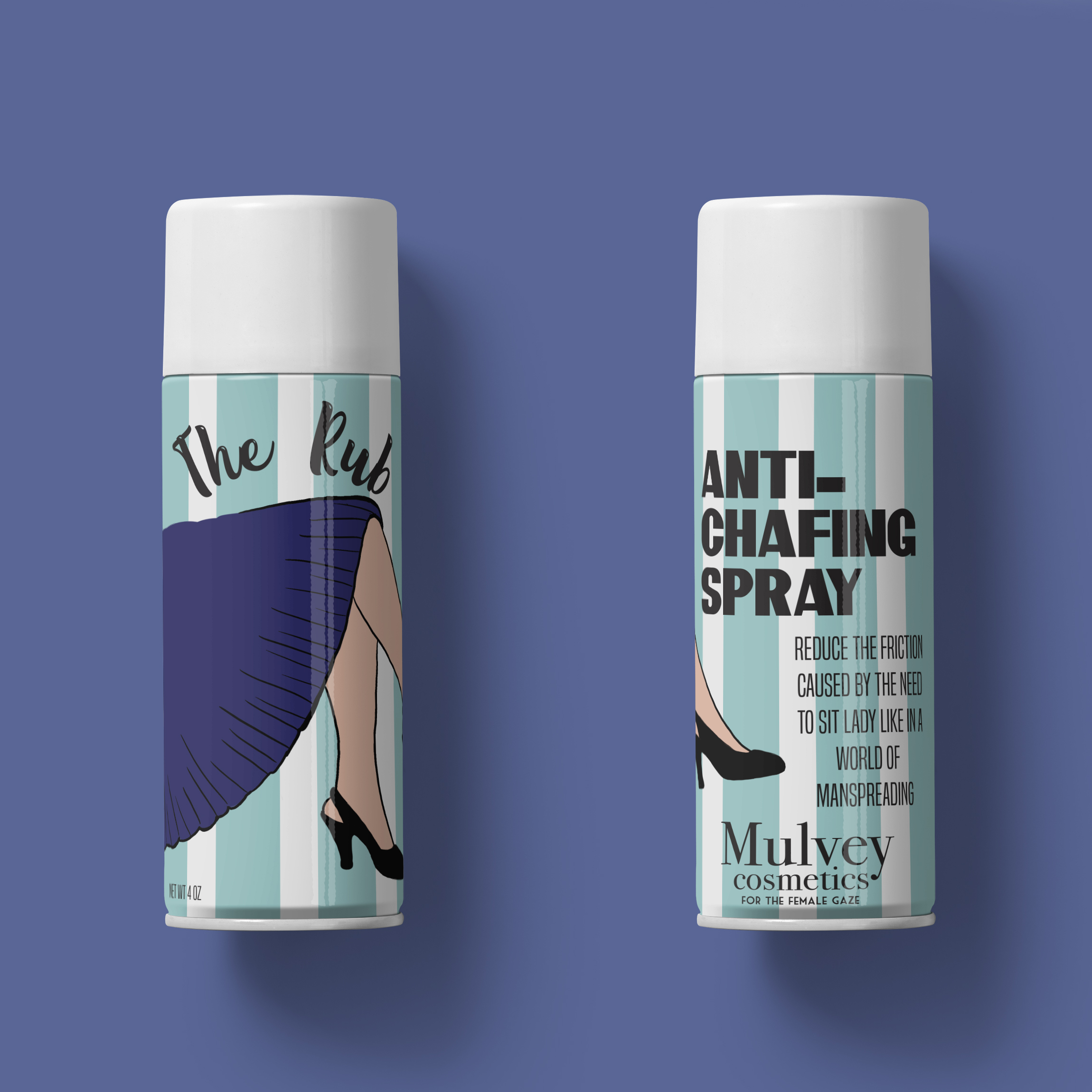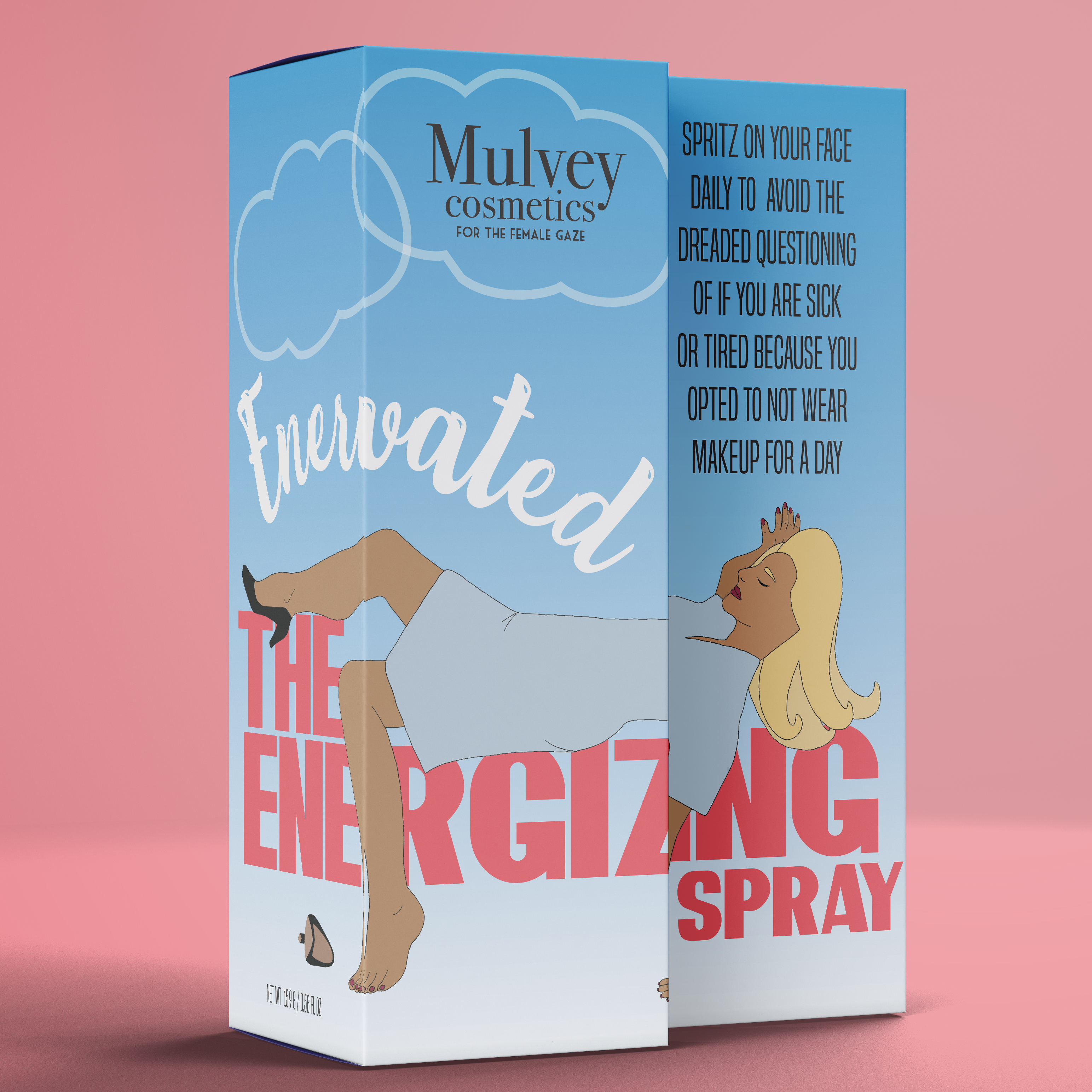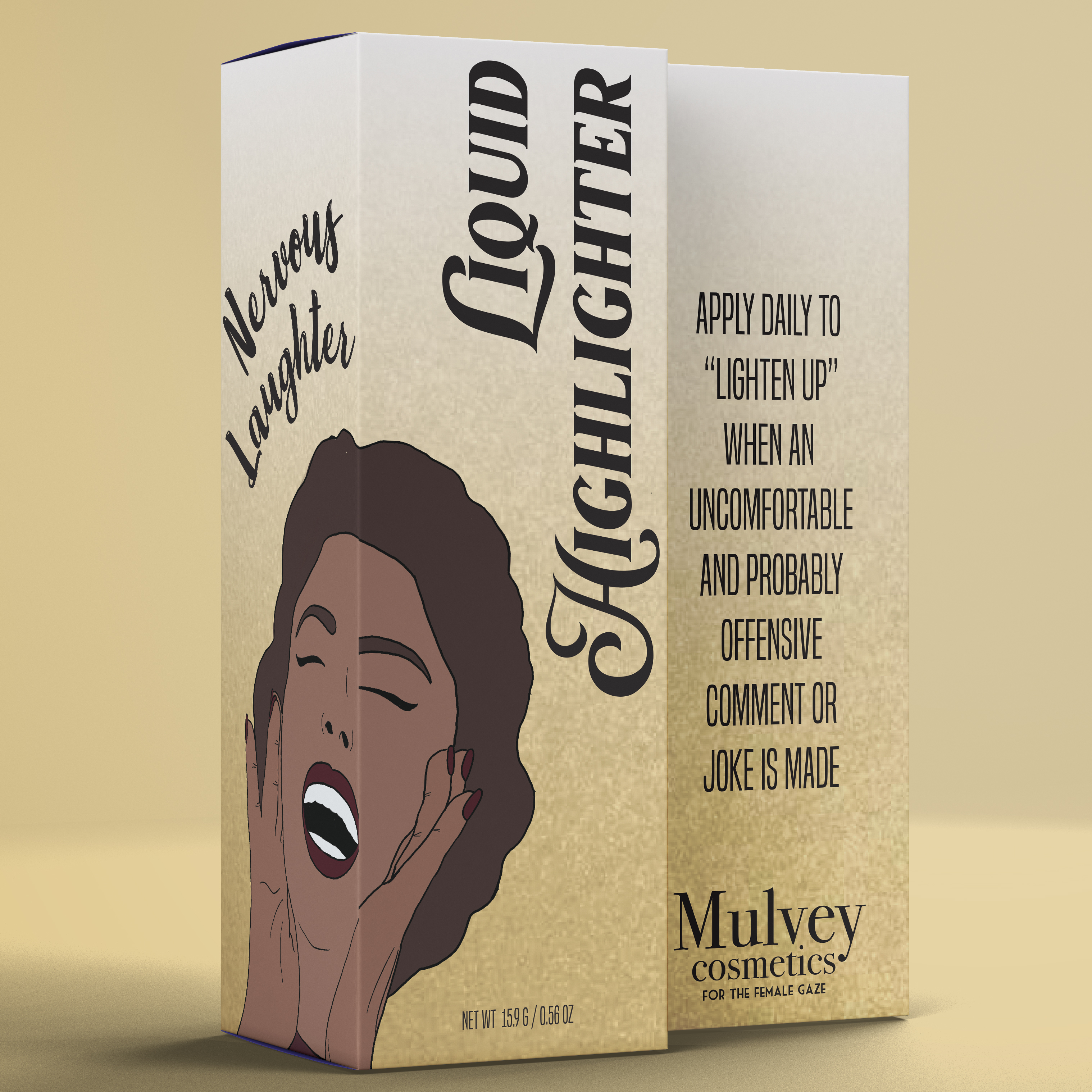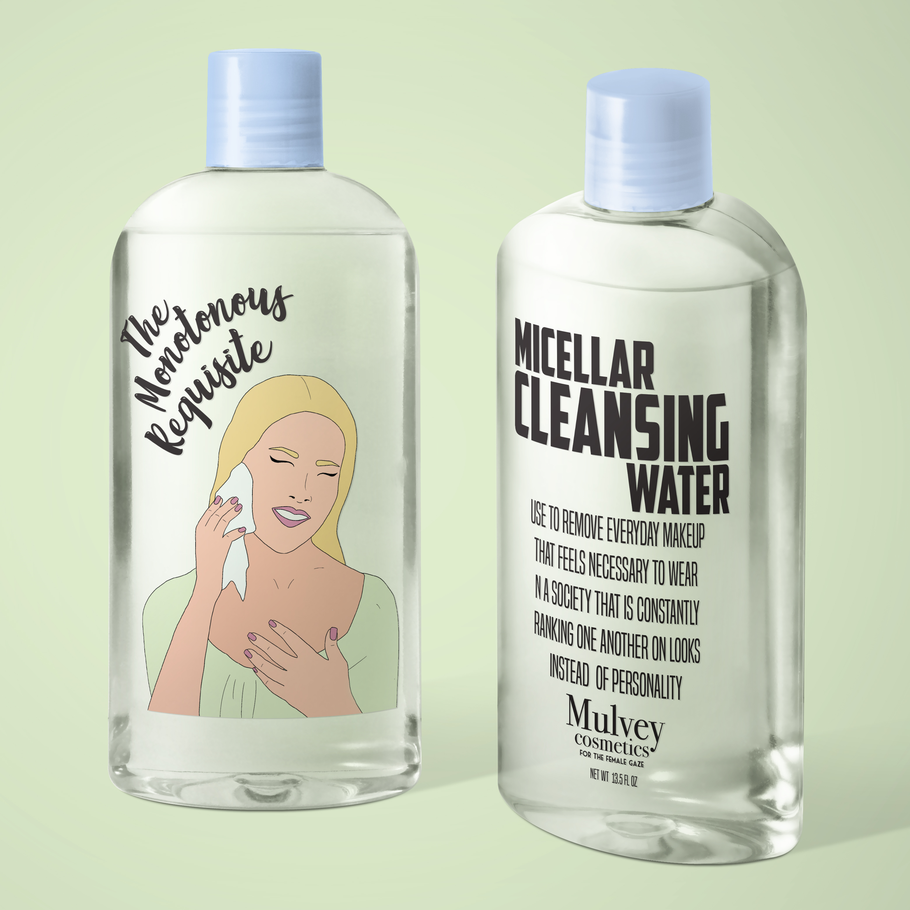 Mulvey Cosmetics is a satirical cosmetic line that addresses the challenges women face in their daily lives. The fonts and illustration style are influenced by the 1950s, a period that idealized the image of the domesticated mother and devoted wife.