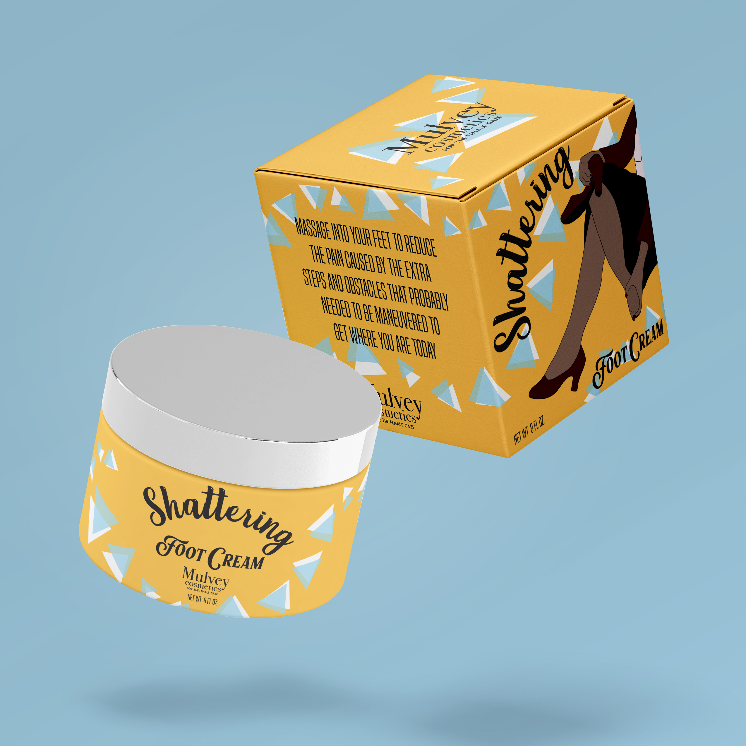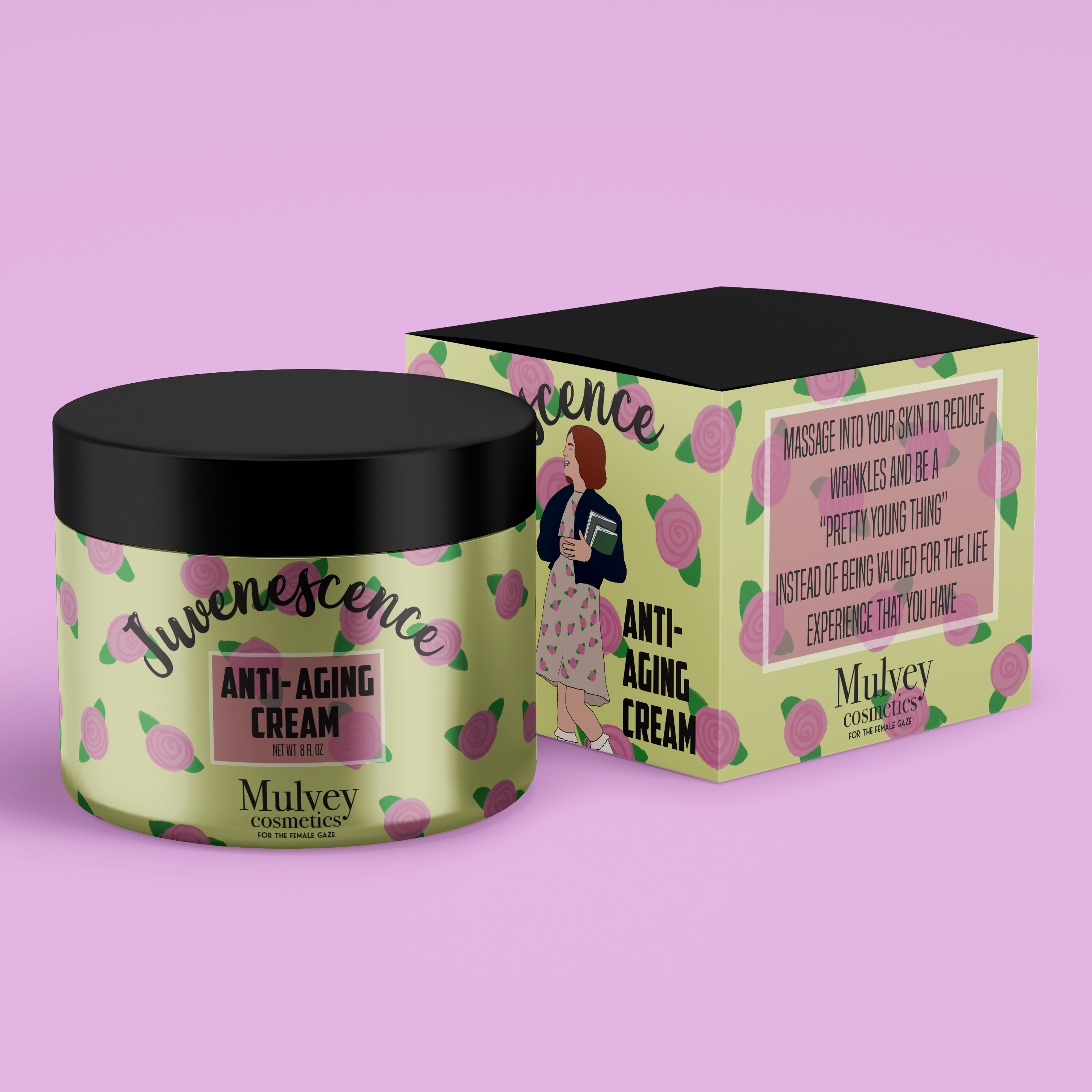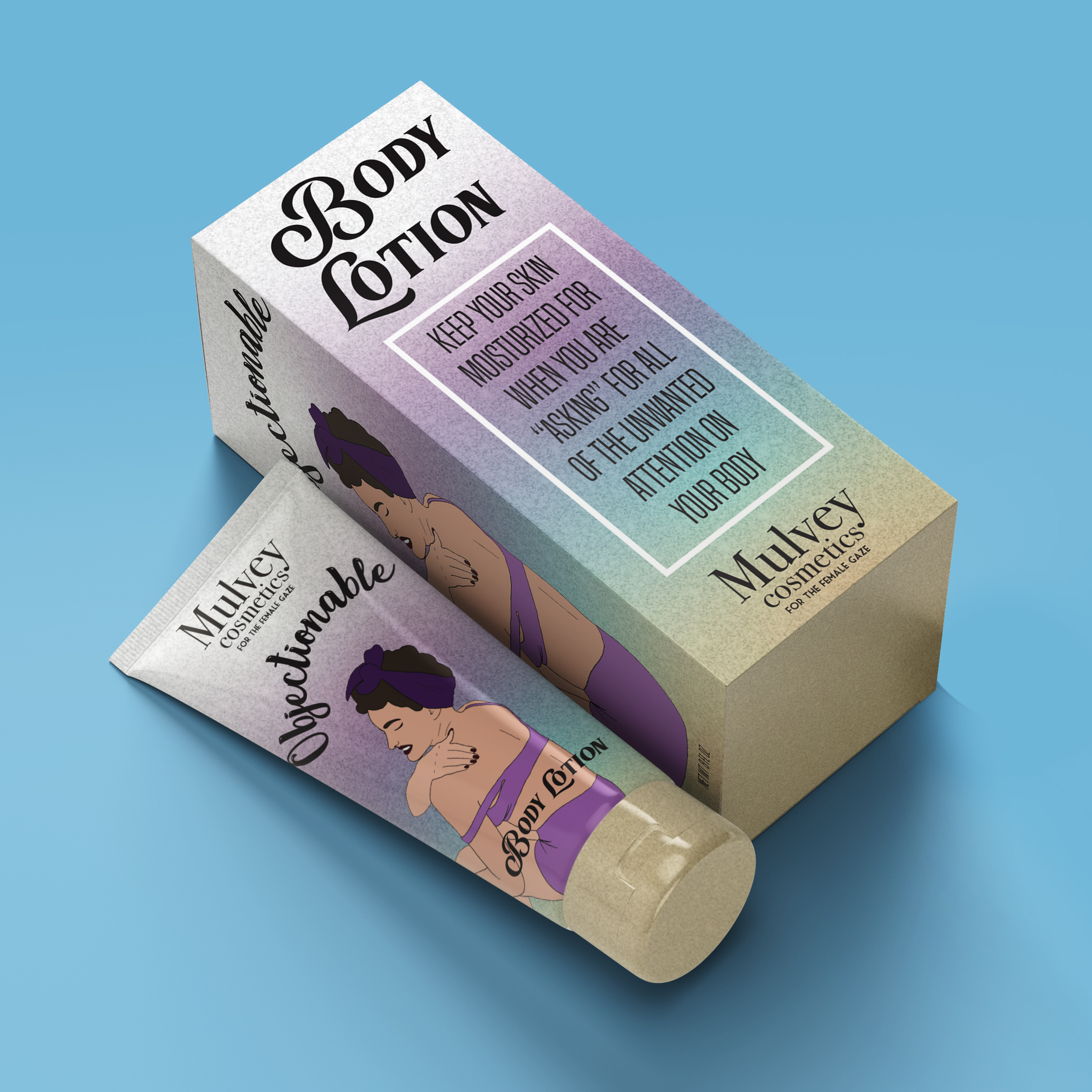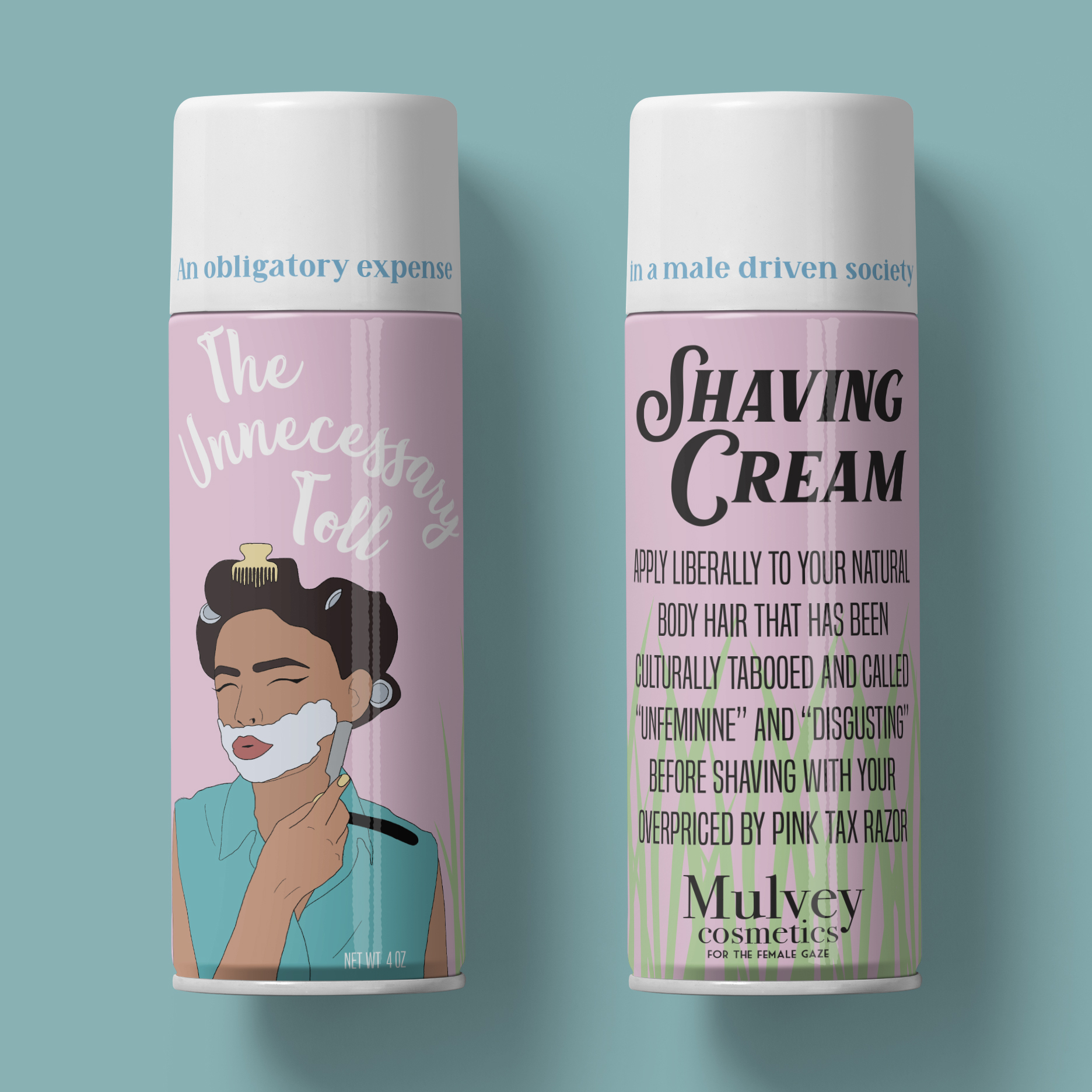 Mulvey Cosmetics is a satirical cosmetic line that addresses the challenges women face in their daily lives. The fonts and illustration style are influenced by the 1950s, a period that idealized the image of the domesticated mother and devoted wife.